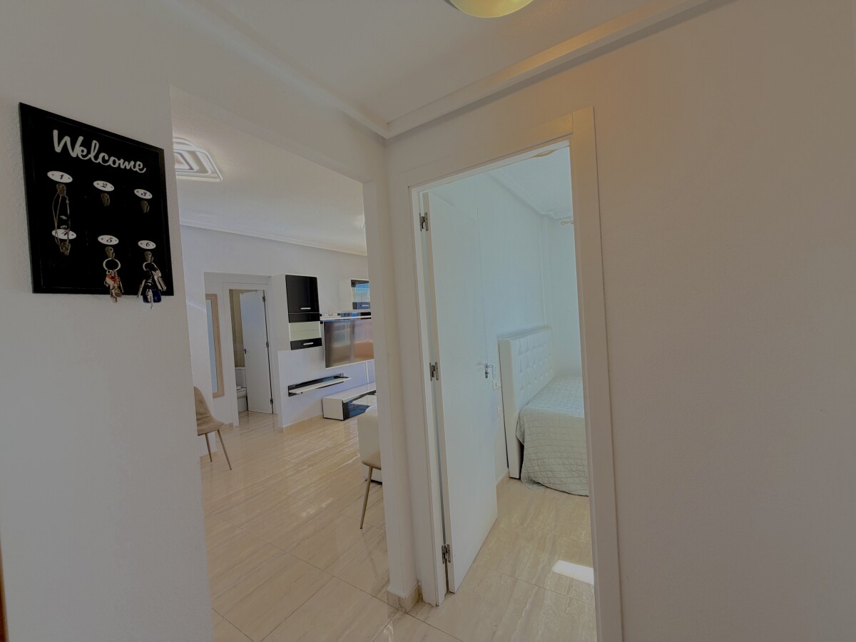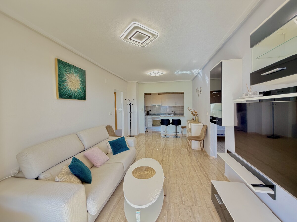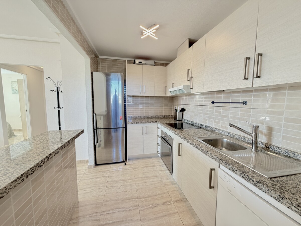 La vivienda cuenta con 3 amplios dormitorios, 2 baños, un acogedor y luminoso salón-comedor, cocina independiente con lavadero y una gran terraza con preciosas vistas al mar y la ciudad. Además, el apartamento se encuentra junto a un campo de golf, ideal para los amantes del deporte y la naturaleza.