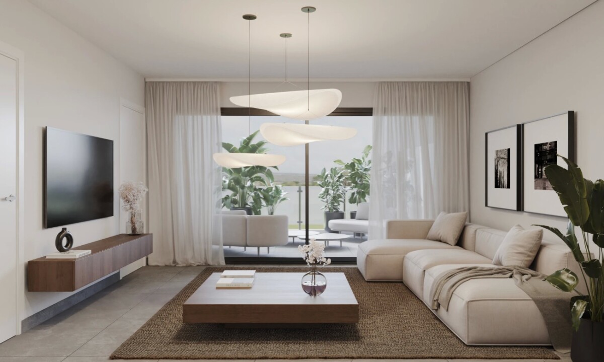 Cada apartamento de este complejo cuenta con un amplio y luminoso salón-comedor, 2 dormitorios, 2 baños, cocina y terraza.